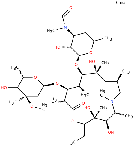 | Chemical Name | (2R, 3S, 4R, 5R, 8R, 10R, 11R, 12S, 13S, 14R)-13-[(2, 6-Dideoxy-3-C-methyl-3-O-methyl-α-ribo-hexopyranosyl)oxy]-2-ethyl-3, 4, 10-trihydroxy-3, 5, 6, 8, 10, 12, 14-heptamethyl-11-[[3, 4, 6-trideoxy-3-(formylmethylamino)-β-D-xylo-hexopyranosyl]oxy]-1-oxa-6-azacyclopentadecan-15-one |