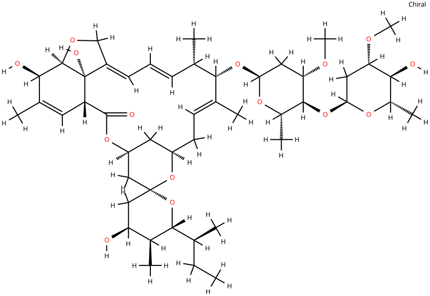 | Chemical Name | (1R, 4S, 4'S, 5'S, 6R, 6'R, 8R, 10E, 12S, 13S, 14E, 16E, 20R, 21R, 24S)-6'-butan-2-yl-4', 21, 24-trihydroxy-12-[(2R, 4S, 5S, 6S)-5-[(2S, 4S, 5S, 6S)-5-hydroxy-4-methoxy-6-methyloxan-2-yl]oxy-4-methoxy-6-methyloxan-2-yl]oxy-5', 11, 13, 22-tetramethylspiro[3, 7, 19-trioxatetracyclo[15.6.1.14, 8.020, 24]pentacosa-10, 14, 16, 22-tetraene-6, 2'-oxane]-2-one |