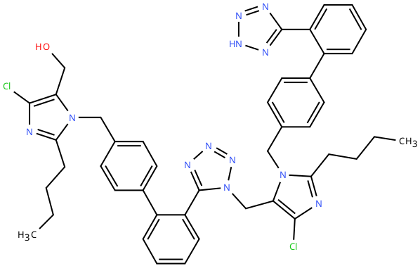 | Chemical Name | [2-Butyl-1-[[2–[1-[[2-butyl-4-chloro-1-[[2–(1H-tetrazol-5-yl)biphenyl-4-yl]methyl]-1H-imidazol-5-yl]methyl]-1H-tetrazol-5-yl]biphenyl-4-yl]methyl]-4-chloro-1H-imidazol-5-yl]methanol |
