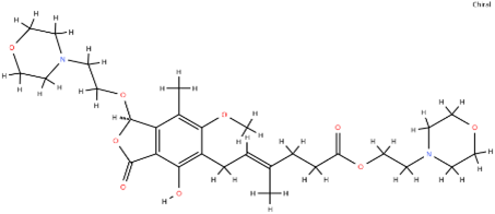 | Chemical Name | 2-(Morpholin-4-yl)ethyl (4E)-6-[(1RS)-4-hydroxy-6-methoxy-7-methyl-1-[2-(morpholin-4-yl)ethoxy]-3-oxo-1, 3-dihydroisobenzofuran-5-yl]-4-methylhex-4-enoate |