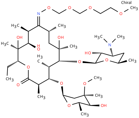 | Chemical Name | (3R, 4S, 5S, 6R, 7R, 9R, 11S, 12R, 13S, 14R, E)-6-(((2S, 3R, 4S, 6R)-4-(dimethylamino)-3-hydroxy-6-methyltetrahydro-2H-pyran-2-yl)oxy)-14-ethyl-7, 12, 13-trihydroxy-4-(((2R, 4R, 5S, 6S)-5-hydroxy-4-methoxy-4, 6-dimethyltetrahydro-2H-pyran-2-yl)oxy)-10-((((2-methoxyethoxy)methoxy)methoxy)imino)-3, 5, 7, 9, 11, 13-hexamethyloxacyclotetradecan-2-one |